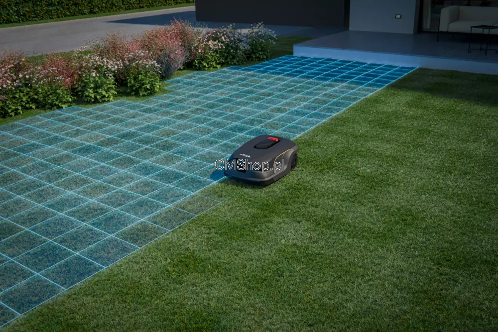 Za nawigację odpowiada system czteropasmowego GNSS RTK z łącznością 4G, zapewniający centymetrową precyzję pozycjonowania. Robot mapuje trawnik, na bieżąco monitoruje jakość sygnału i oblicza najbardziej efektywne trasy koszenia, optymalizując wysokość cięcia, prędkość pracy oraz zużycie energii. Tryb Large Area Mode zwiększa prędkość operacyjną o 10%, a inteligentne zarządzanie strefami pozwala pielęgnować nawet bardzo złożone trawniki przy minimalnych przestojach. Po zakończeniu ładowania robot wznawia pracę dokładnie w miejscu, w którym została przerwana, zachowując pełną ciągłość koszenia.