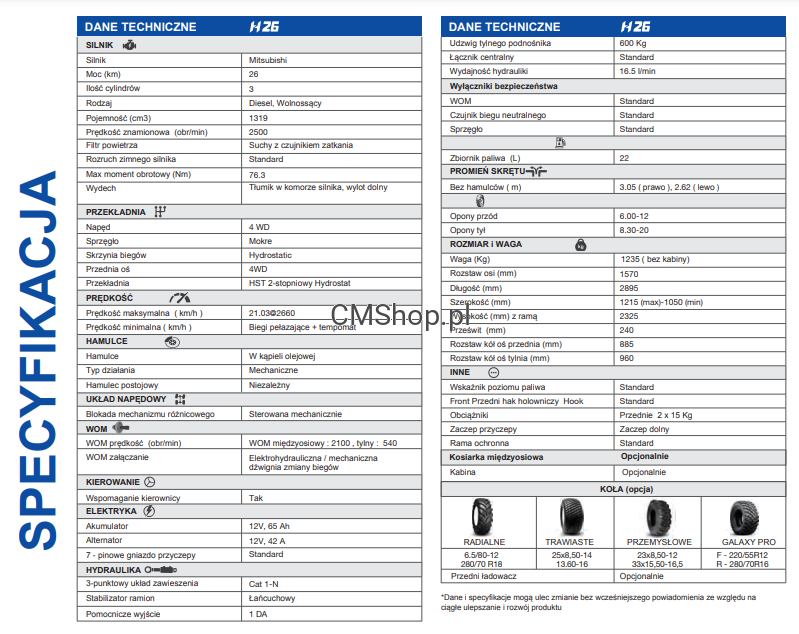- koła szersze rolnicze, przemysłowe lub trawiaste za dopłatą