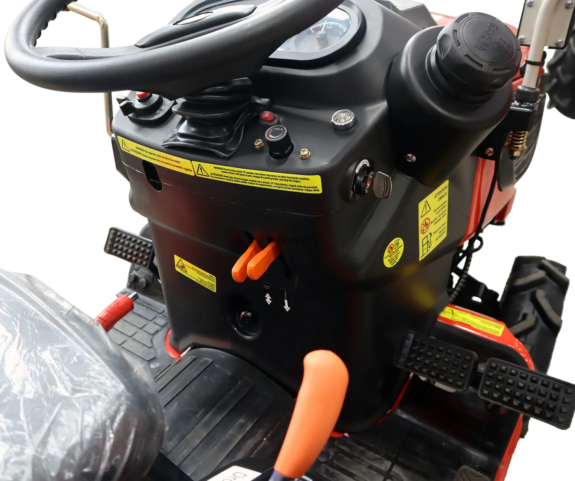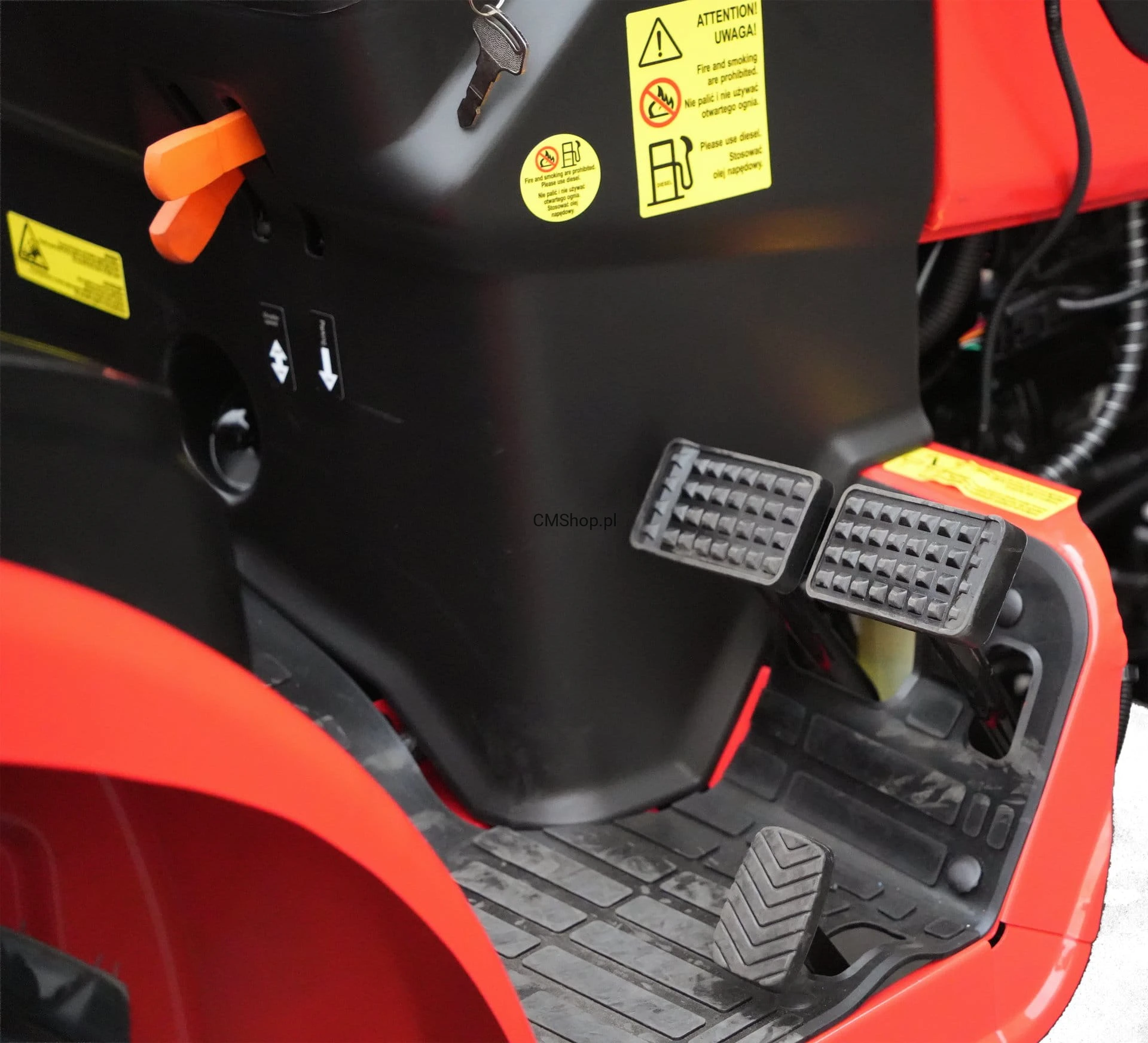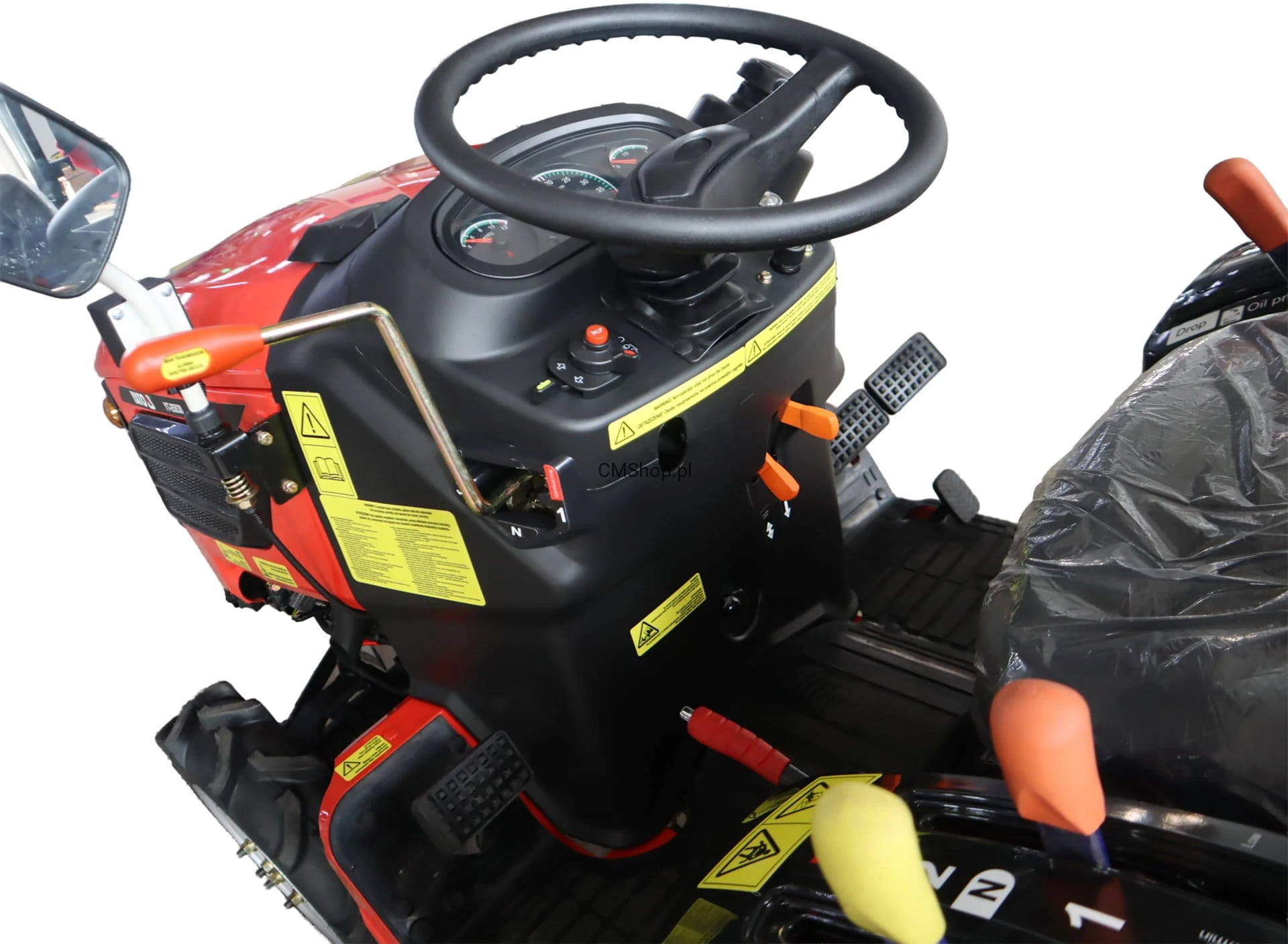 Sercem modelu jest 3-cylindrowy silnik wysokoprężny XY377-C o mocy 25 KM, spełniający normy emisji EURO V, co przekłada się na efektywną i ekonomiczną pracę. Zastosowana skrzynia biegów z 6 przełożeniami do przodu oraz 2 biegami wstecznymi, w połączeniu z dwubiegowym wałkiem PTO, pozwala precyzyjnie dopasować parametry pracy do rodzaju wykonywanego zadania – od uprawy gleby po transport. Stabilna konstrukcja, odpowiedni prześwit oraz możliwość regulacji rozstawu kół zwiększają funkcjonalność maszyny, a systemy bezpieczeństwa, w tym ROPS i czujnik obecności operatora, podnoszą komfort i kontrolę podczas użytkowania.
