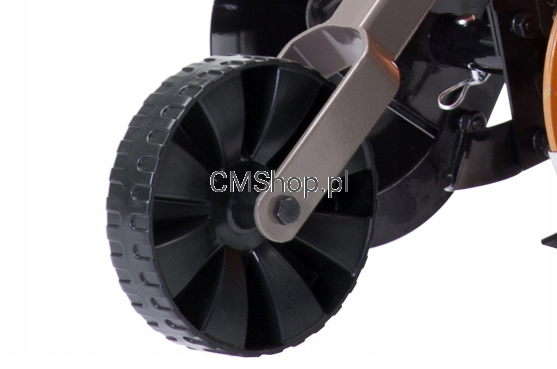 Zapewnia stabilność podczas przemieszczania urządzenia miedzy obszarami roboczymi. Zwiększona średnica koła ułatwia pokonywanie nierówności terenu. Przełączanie z trybu roboczego na transportowy i na odwrót odbywa się w ciągu kilku sekund.