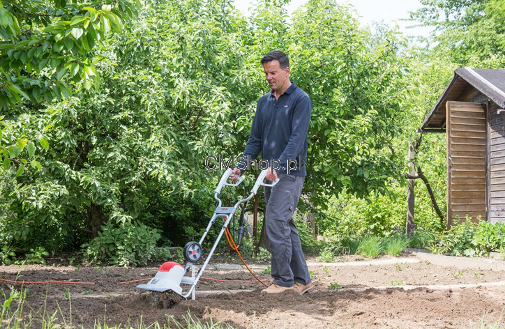 Glebogryzarka elektryczna IKRA FEM 1500 to urządzenie do pielęgnacji zarówno przydomowego ogródka, jak i działki z dostępem do prądu elektrycznego. Idealny niezbędnik osób poszukujących sprzętu do spulchniania i wyrównywania dużych powierzchni zwłaszcza trudnej w uprawie zbitej i gliniastej gleby. Wyposażone w elektryczny silnik o mocy 1500W napędzany przez sześć ostrzy. Niewielka waga produktu firmy IKRA zapewnia łatwość w manewrowaniu urządzeniem oraz nie wymaga używania dodatkowej siły czym zapewnia wysoki komfort pracy. Jeśli szukasz niedrogiej, a zarazem funkcjonalnej i solidnej glebogryzarki elektrycznej to model IKRA FEM 1500 będzie znakomitym wyborem. Prezentowane urządzenie pozwala szybko i wygodnie przekopać ziemię w ogrodzie i na działce. Odpowiednio spulchnione podłoże pozwoli na wysianie upraw warzywnych czy różne posianie nasion trawnika. Dodatkowo obrotowe noże mieszają ziemię, dlatego możemy ją wymieszać na przykład z obornikiem, nawozem czy kompostem i od razu szybko odżywić teren. Wzbudza zainteresowanie osób ceniących sobie wygodę i perfekcjonizm w dbaniu o swój ogródek.