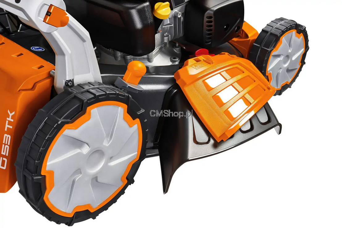 Kanał wyrzutowy o dużej powierzchni przekroju możliwa optymalne wypełnienie kosza. Natomiast dzięki zaślepce kanału w łatwy sposób kosiarka uzyskuje funkcję mielenia; czyli najbardziej ekologiczny i efektywny sposób pozbywania się pokosu.