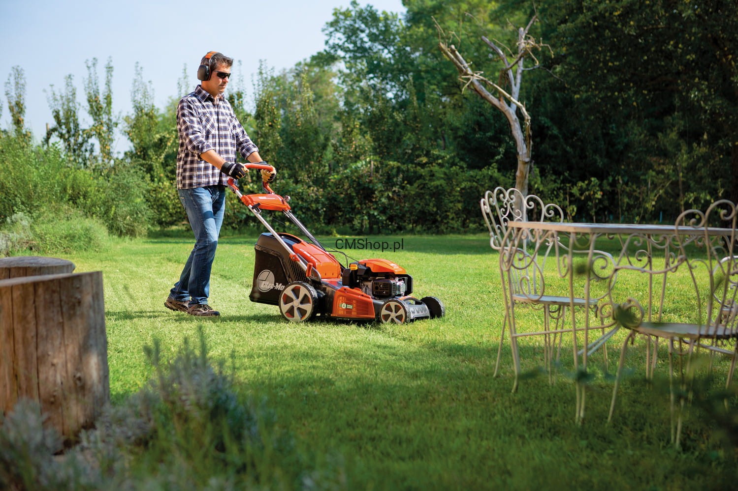 - Zaślepka umożliwiająca pracę w trybie rozdrabniania dostępna jest jako wyposażenie seryjne. Dostępny jest model z regulatorem umożliwiającym ustawienie odpowiedniej prędkości stosownie do typu ogrodu i roślinności.