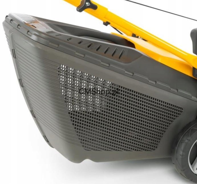 STIGA Collector 43 o szerokości koszenia 41 cm. Kosiarka jest napędzana niezawodnym silnikiem STIGA 120 OHV o pojemności 123 cm3 oraz mocy znamionowej 1.90 kW. Obudowa jest wykonana ze stali, a centralny system regulacji wysokości koszenia można łatwo ustawić w jednej z sześciu pozycji w zakresie od 22 mm do 65 mm za pomocą uchwytu. Ten model zaprojektowano pod kątem łatwego zbierania skoszonej trawy i wyposażono w 60-litrowy kosz na trawę. Regulowany, ergonomiczny uchwyt podnosi komfort obsługi, a koła z łożyskami kulkowymi ułatwiają pracę i przemieszczanie kosiarki. * Warunki przedłużonej gwarancji na https://www.stiga.pl/warunki-gwarancji-3-1