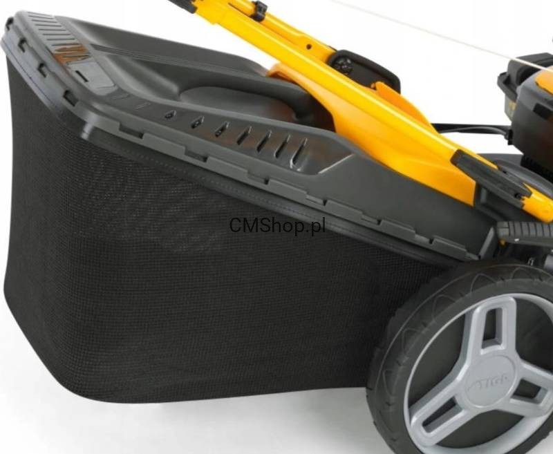 Kosiarka STIGA Combi 48 SQ ma szerokość roboczą wynoszącą 46 cm i hybrydowy, 60-litrowy kosz na trawę ze wskaźnikiem zapełnienia. W stalowym podwoziu mieści się niezawodny silnik STIGA o pojemności 139 cm³ i mocy 2,20 kW przy 2900 obr./min. Model Combi 48 SQ umożliwia wybranie jednej z 4 funkcji koszenia: wyrzutu tylnego, wyrzutu bocznego, zbierania lub mulczowania, które polega na dokładnym rozdrabnianiu skoszonej trawy i rozrzucaniu jej po podłożu jako naturalnego nawozu. Wysokość koszenia można łatwo ustawić jednej z 6 pozycji, w zakresie od 22 do 80 mm. Duże tylne koła (280 mm) ułatwiają prowadzenie na nierównym podłożu. W zestawie znajdują się: deflektor boczny i zaślepka do mulczowania. Kosz na trawę wyposażono w mocowanie, które umożliwia łatwe podłączenie go do maszyny i zapobiega wypadaniu skoszonej trawy podczas zdejmowania.