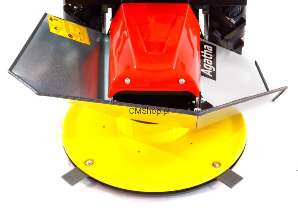 Nowością w kosiarce AGATHA jest asymetryczna, wykonana z ocynkowanej blachy osłona bębna, która poprawia znacznie koszenie wysokiej trawy i poprawia odkładanie pokosu, jednocześnie jest trwalsza od osłon z tworzywa. Dodatkowo wzmocniono bęben w miejscach osadzenia noży tnących. Do napędu jazdy zastosowano trwałą przekładnie ze sztywną osią utrzymującą stały kierunek jazdy podczas koszenia. Zastosowano także wzmocnione kevlarowe paski.
