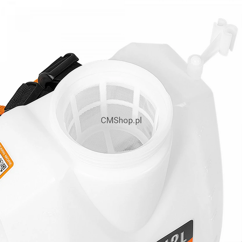 Szeroki otwór wlewowy ułatwia napełnianie, a wbudowany filtr zapobiega przedostawaniu się zanieczyszczeń do zbiornika i chroni pompę przed uszkodzeniem