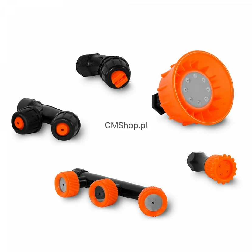 Szeroki wybór dysz umożliwia dostosowanie opryskiwacza do różnych zadań ogrodowych, dezynfekcji i aplikacji detergentów