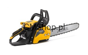Sercem urządzenia jest niezawodny silnik spalinowy o mocy 2 kW i pojemności skokowej 42,4 cm3 (15 cali). Wyposażona jest w prowadnicę 38 cm (15 cali) i wysokiej jakości łańcuch. Magnesowy karter silnika zapewnia wytrzymałość, niezawodność i szybkie chłodzenie. Pompa olejowa jest automatyczna i regulowana. Czynności konserwacyjne można wykonywać szybko i łatwo dzięki wielu funkcjom, takim jak beznarzędziowy uchwyt na pokrywie filtra powietrza, klucz napinający umieszczony pod tylnym uchwytem i wziernik do sprawdzania poziomu paliwa w zbiorniku. Ergonomiczny, miękki w dotyku uchwyt i system sprężyn zapewniają mniejsze wibracje i większy komfort.