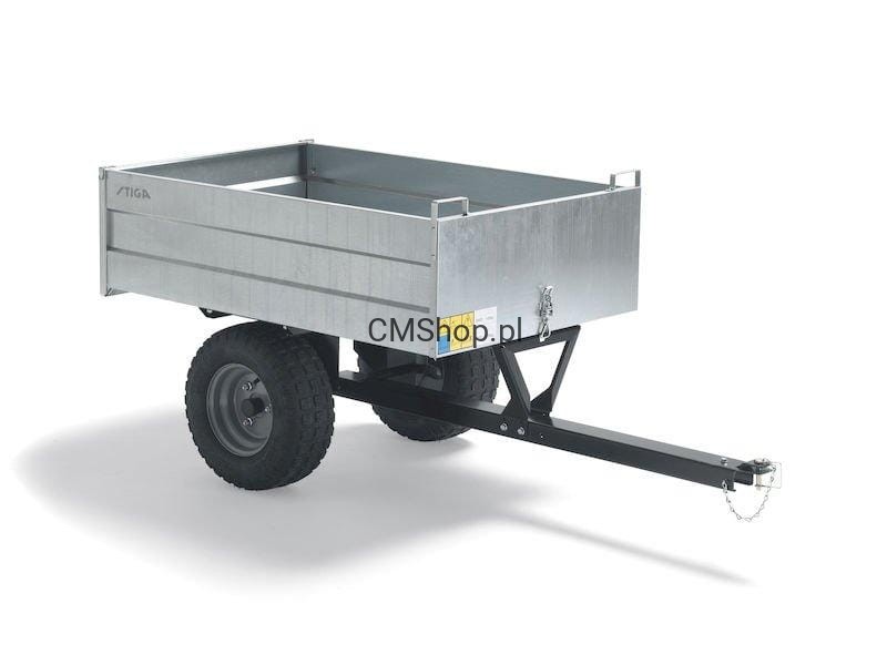 Stal ocynkowana oraz opony z bieżnikiem Stiga. Zdejmowana tylna burta. Posiada funkcję wywrotki. Pojemność 240 litrów. Cena promocyjna przy zakupie z traktorem.