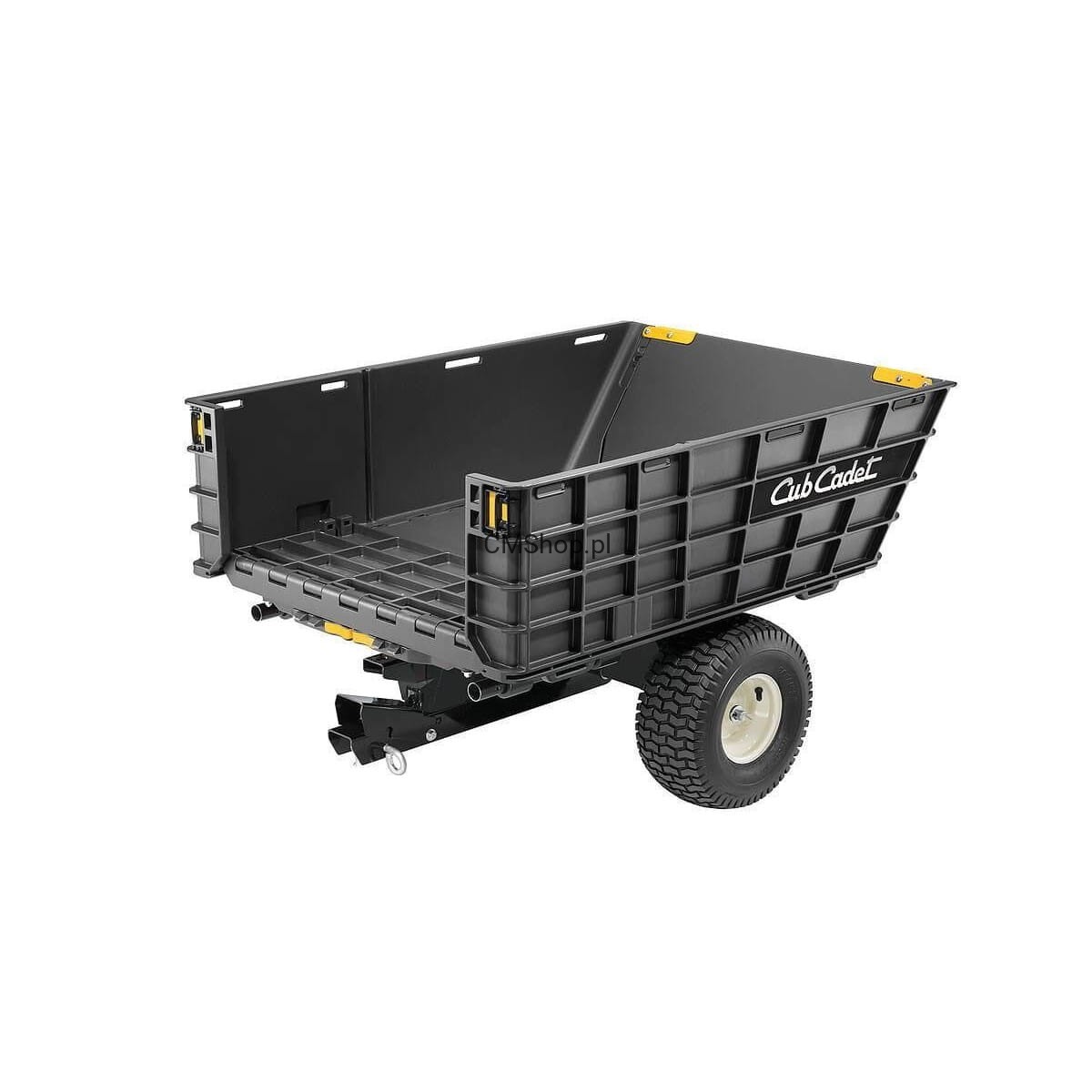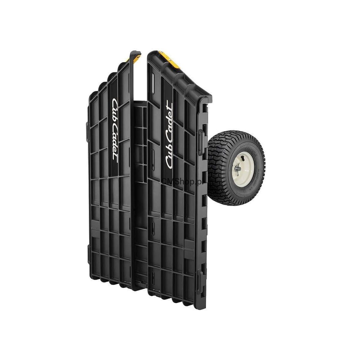 Przyczepka marki Cub Cadet zachwyca wielofunkcyjnością. Przeznaczona do stosowania z traktorkami ogrodowymi wszystkich producentów. Jej największym atutem jest możliwość złożenia beznarzędziowo burt, dzięki czemu można ustawić ją w pionie oraz transportować różnego rodzaju ładunki wykraczające poza obrys. Opróżnianie przyczepki umożliwia dźwignia nożna. Posiada dwa koła o rozmiarze 15 " na 6" z oponami bezpiecznymi dla trawnika. Natomiast duża nośność ładunkowa pozwoli na przenoszenie ładunków do 360 kg z burtami ustawionymi w pozycji pionowej.