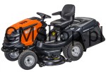 - Czynności konserwacyjne dotyczące tarczy tnącej są proste i szybkie. Szerokie koła posiadają specjalnie zaprojektowane bieżniki, które nie niszczą trawy, po której jedzie kosiarka.