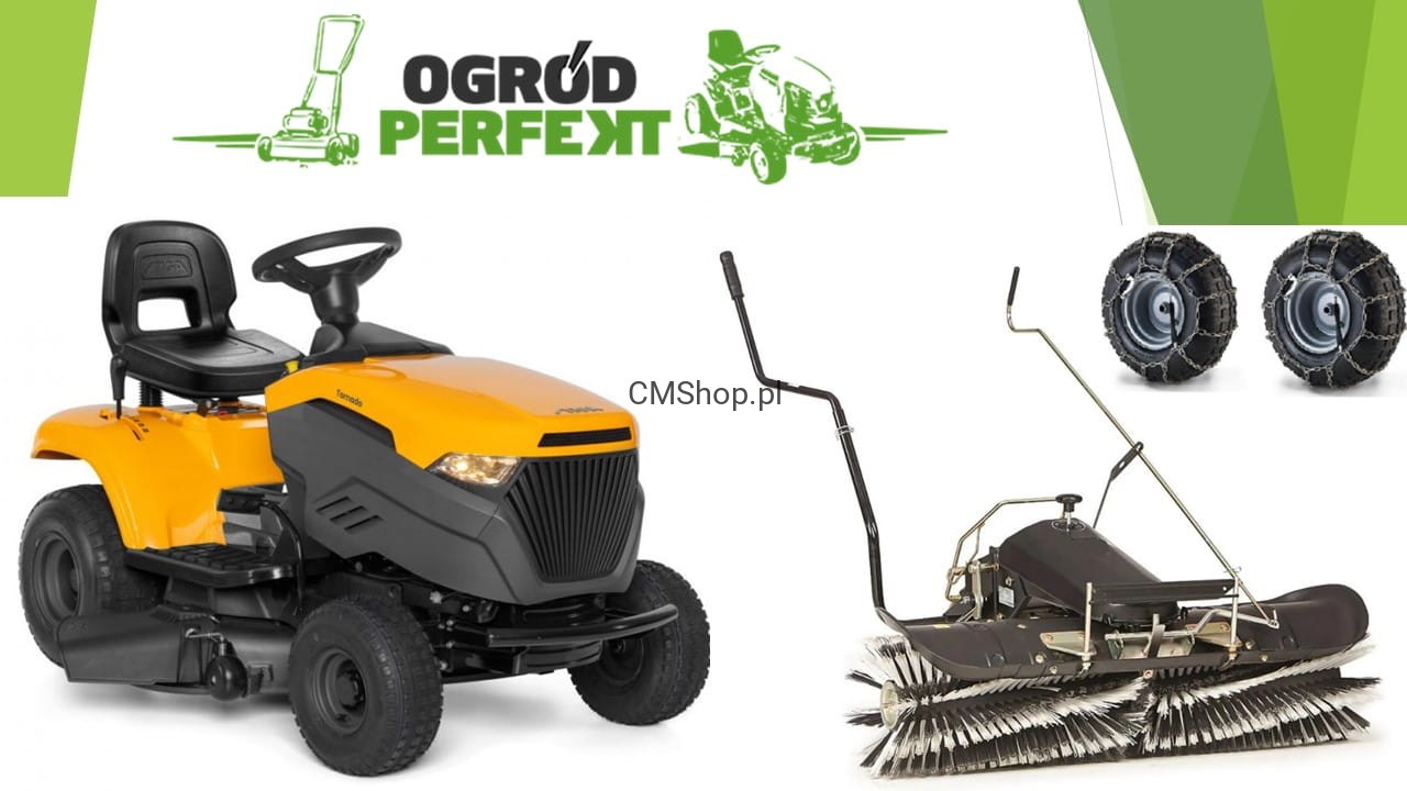 Zestaw zimowy Traktor ogrodowy STIGA Tornado 398 M / Tornado 2098 z zamiatarką 120 cm z pojemnikiem na nieczystości i łańcuchami śnieżnymi na koła 2 szt.