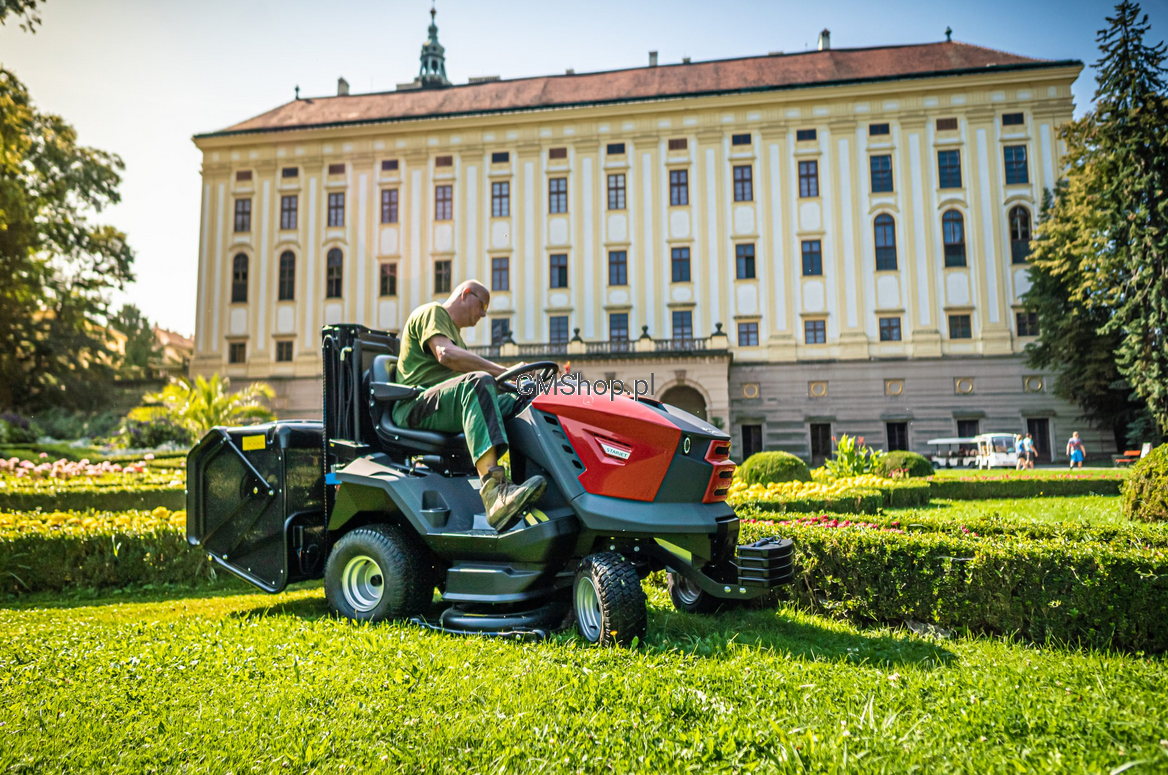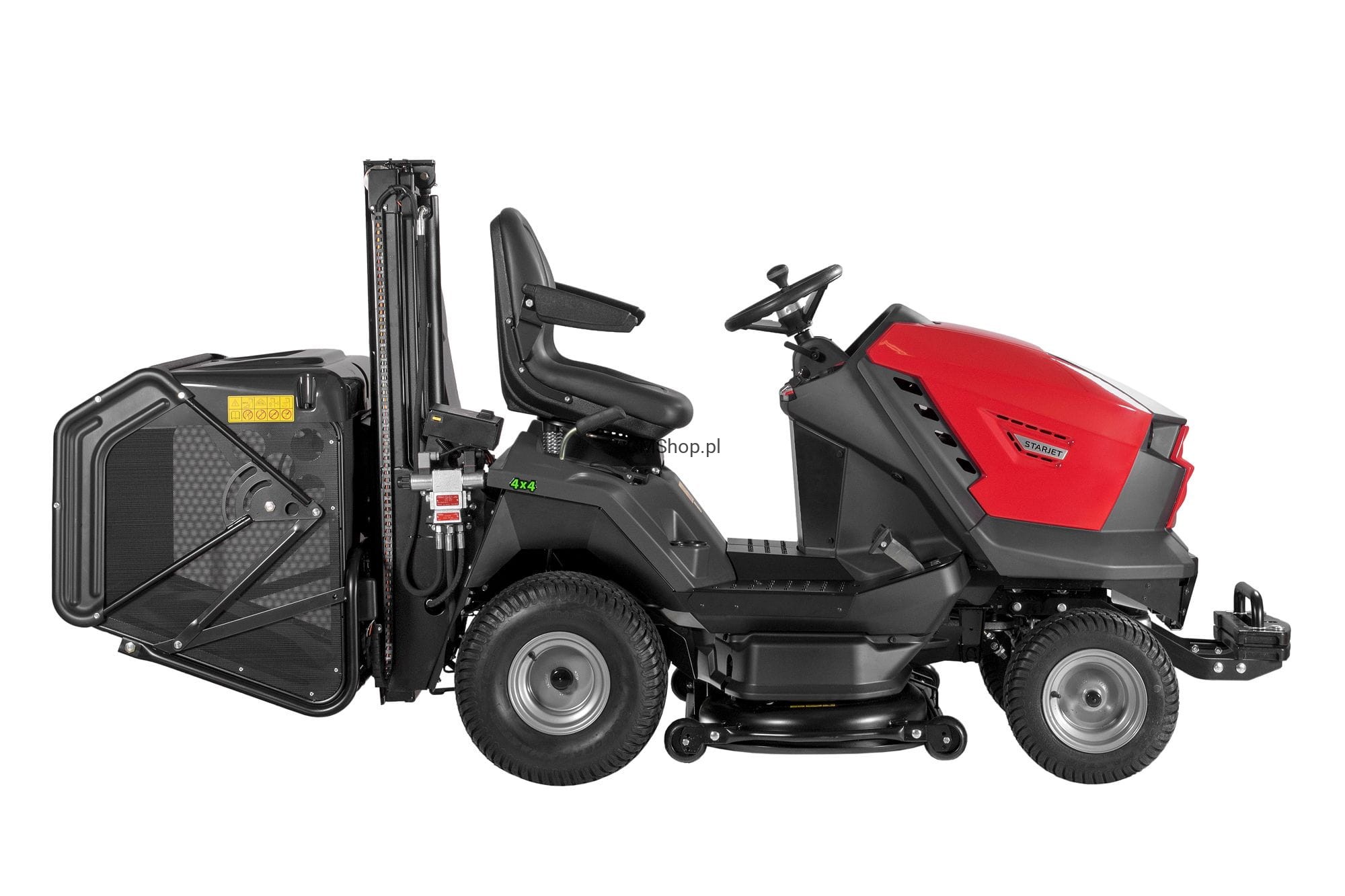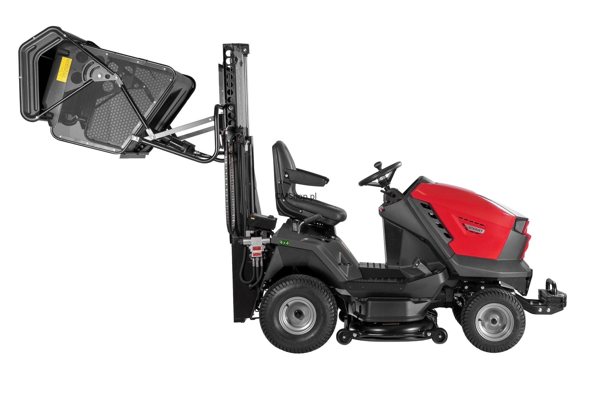 Traktor komunalny SECO Starjet P6 PRO 4x4 z wysokim wysypem przeznaczony do profesjonalnych rozwiązań. Znajdzie zastosowanie do koszenia boisk, ośrodków sportu, parków, terenów zieleni. Wyposażony w mocną skrzynię biegów, napęd 4x4. Dodatkowo wyposażono ten model w mechanizm wysokiego podnoszenia kosza, dzięki któremu idealnie nadaje się do koszenia dużych powierzchni, ponieważ eliminuje konieczność ręcznego ładowania skoszonej trawy lub zebranych liści. Starjet P6 PRO 4x4 wyposażono w 2-nożowy agregat tnący o szerokości 102 cm , wzmocniony 3 zderzakami. Pojemnik na trawę można otworzyć na dowolnej wysokości.