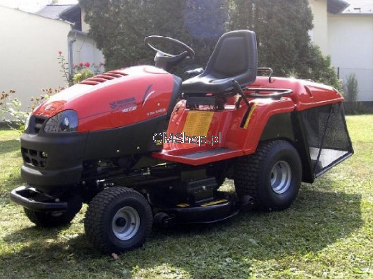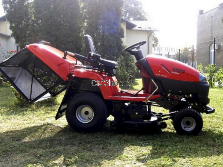 -pojemnik tzw. niskiego składowania elektryczne za pomocą siłownika sterowanego przyciskiem na błotniku, dzięki czemu opróżnianie zbiornika trawy nie wymaga wstawania z fotela ani wykorzystywania siły fizycznej./tzw niskie składowanie/
