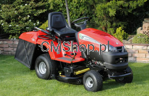 -pojemnik tzw. niskiego składowania elektryczne za pomocą siłownika sterowanego przyciskiem na błotniku, dzięki czemu opróżnianie zbiornika trawy nie wymaga wstawania z fotela ani wykorzystywania siły fizycznej./tzw niskie składowanie/