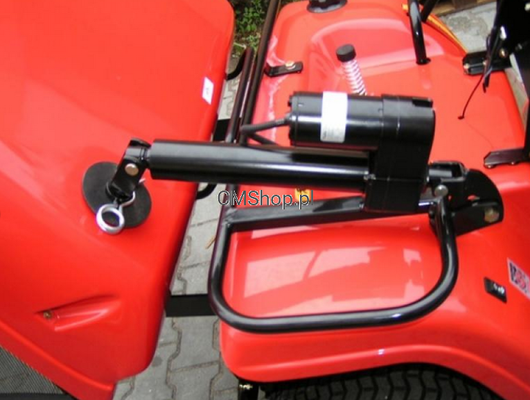 - Mocowanie układu koszącego za pomocą szybko-złączy, co ułatwia demontaż przy stosowaniu urządzeń dodatkowych jak spychacz czy szczotka, frez śnieżny