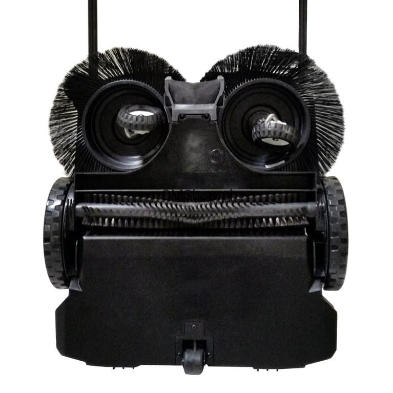 - System szczotkujący działa tak samo jak w zamiatarkach z serii 400. Dodatkowym atutem jest możliwość pracy przy wykorzystaniu silnika napędzanego akumulatorem (okres pracy wynosi około 90 min, czas ładowania około 7 godzin). Podczas gdy w szczotki talerzowe w pozostałych seriach (200,300,400) obracają się wyłącznie w momencie pchania zamiatarki przez operatora to w serii 600, istnieje możliwość pracy szczotek w miejscu, co niezwykle poprawia jakość sprzątania w trudniej dostępnych miejscach, w kątach lub w miejscach wymagających manewrowania zamiatarką.