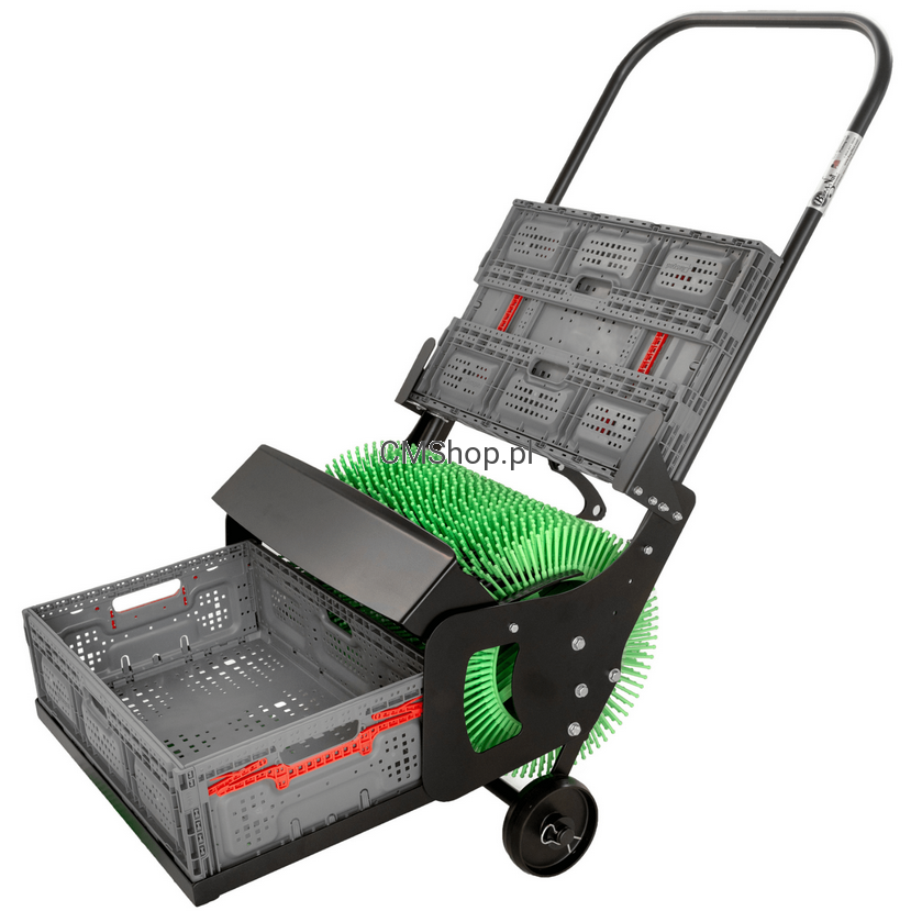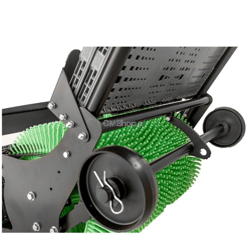 Nowoczesny mechanizm transportowy – specjalne kółka umożliwiają łatwe przemieszczanie maszyny bez kontaktu elementów zbierających z podłożem.